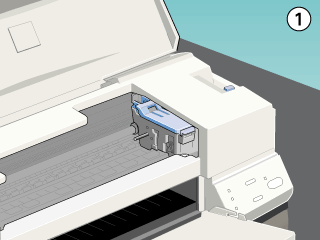 Lift the appropriate ink cartridge clamp. Then lift the ink cartridge out of the printer and dispose of it properly.