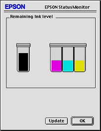 | Click the EPSON StatusMonitor button in the Utility dialog box. A graphic appears displaying the amount of ink remaining. |