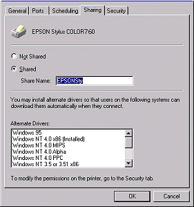 Setting up your printer as a shared printer