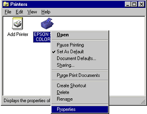 Click Start, point to Settings, and click Printers.