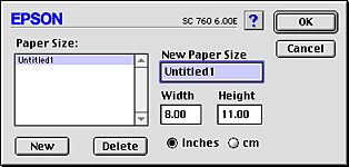 | To define a new paper size, click New. The dialog box updates to allow you to enter a name for the new size. |