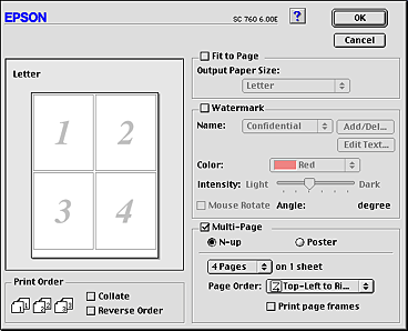 Select the Multi-Page check box and click N-up. Then make the following settings.