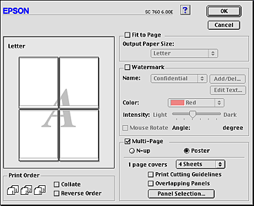 Select the Multi-Page check box and click Poster. Then make the following settings.