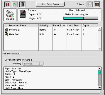 After you send a print job to the printer, you can use the EPSON Monitor3 utility to check, cancel, or change the priority of print jobs that are queued for printing. This utility also shows the status of the job currently being printed.