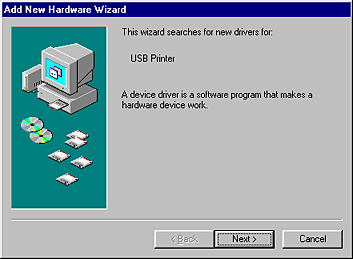Your computer must be a Windows 98 pre-installed model. You may not be able to install or run the USB Printer Driver on a computer which is not equipped with a USB port or which is upgraded from Windows 95 to 98.