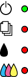 You can identify many common printer problems with the lights on your printer's control panel. If your printer stops working and the lights are on or flashing, use the following table of panel light patterns to diagnose the problem, then follow the recommended corrective measures.