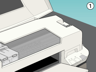 Hold down the load/eject button for three seconds. The print head moves to the replacement position and the power light begins flashing.