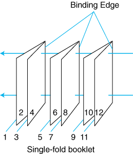 In this example, the printer would print pages 1 and 4 of your document on the first sheet of paper, pages 5 and 8 on the second sheet of paper, and pages 9 and 12 on the third sheet of paper. After you reload the printouts in the sheet feeder, the printer would then print pages 2 and 3 on the back of the first sheet of paper, pages 6 and 7 on the back of the second sheet of paper, and 10 and 11 on the back of the third sheet of paper. After printing is finished, you can fold each sheet of paper and bind them together.