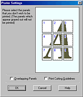 If you only want to print a few of the panels without printing the entire poster, click the panels that you don't wish to print, then click OK to close the Poster Settings dialog box.
