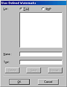 You can also add your own text-based or image-based watermarks to the Watermark list. To add a watermark to the list, click the Add/Del button. The following dialog box appears.