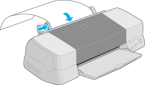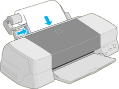 Gently insert the end of the paper into the printer, flush with the right edge guide, as far as it will go. Slide the left edge guide against the left edge of the paper.