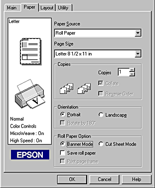 Make the Roll Paper Option settings at the bottom of the dialog box.