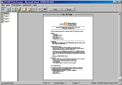 After you have previewed the document, click Print to print the document, or click Cancel to cancel printing.