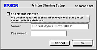 Select the Share this Printer check box, then type the printer name and password information as necessary.