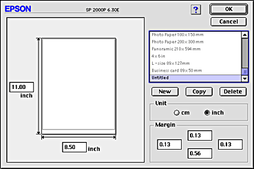 Select the paper size you want to use. If you want to define a custom paper size, see Defining a custom paper size. |