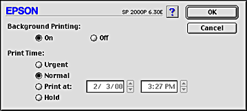 | Click the Background Printing icon button in the Print dialog box. The Background Printing dialog box opens. |