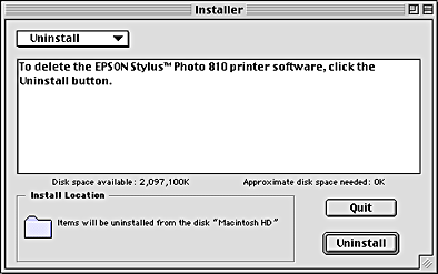 Select Uninstall from the pull-down menu at the top left, then click Uninstall.