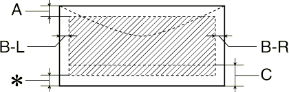 Diagonal lines show printable area. |