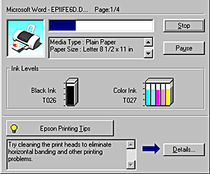 After you send a print job, an EPSON Stylus Photo 810 Series button appears on the taskbar. Click this button to open the EPSON Spool Manager.