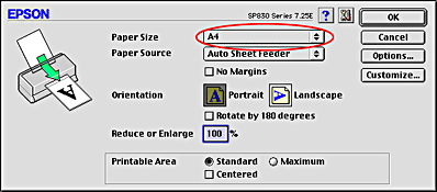 Select A4 as the Paper Size setting. Then, click OK to close the dialog box.