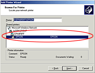 Double-click the icon of the computer that is directly connected to the printer. Then, click the icon for the appropriate printer.