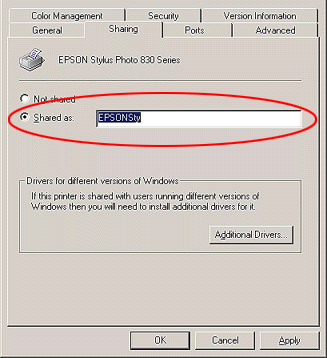 Select Shared as (for Windows NT 4.0 users, select Shared), and then type a name for the shared printer.