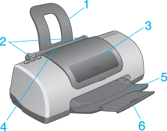 3. Printer cover: Covers the printing mechanism. Open only when installing or replacing ink cartridges.