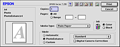 The Mode settings in the Print dialog box give you three levels of control over the printer software, as explained below: