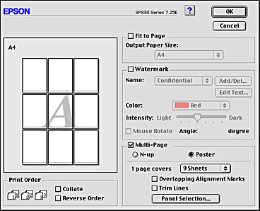 Selecting the Multi-Page check box allows you to choose between the N-up and Poster settings. Refer to the appropriate section below.