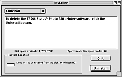 Select Uninstall from the pull-down menu at the top left, and then click Uninstall.