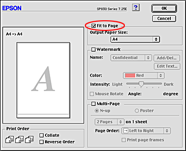 Select Fit to Page check box on the Layout dialog box (Macintosh).