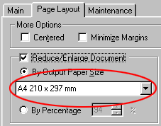Under By Output Paper Size on the Page Layout menu (Windows), select the paper size that you loaded in your printer.