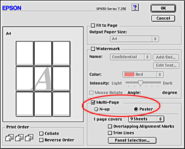 Poster printing allows you to print poster-size images by enlarging one page to cover several sheets of paper.