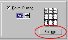 | Click the Settings button to adjust the way your poster will print. The Poster Settings dialog box opens. |