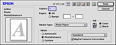 If you are printing photos taken with a digital camera, you can also select the Digital Camera Correction check box to give your printed images the smooth, natural appearance of photographs taken with a film camera.