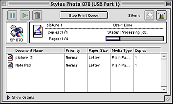 After you send a print job to the printer, you can use the EPSON Monitor3 utility to check, cancel, or change the priority of print jobs that are queued for printing. This utility also shows the status of the job currently being printed.