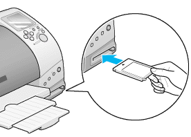 Use the PC card adapter for CompactFlash packed with your printer. PC card adapters for SmartMedia, Memory Stick, Microdrive and SD Memory Card are sold separately.