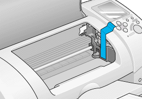 | Open the printer cover and make sure that the print head is in the home (far right) position. If not, plug in the printer, wait until the print head returns to the home position, then close the printer cover and unplug the printer. |