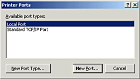 In the Printer Ports dialog box, select Local Port, then click New Port.