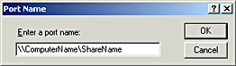 In the Port Name dialog box, enter the path information for your printer using the format below: \\name of computer that is connected to the printer\name of the shared printer.