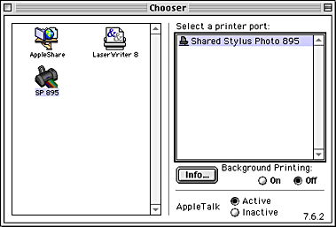 Choose Chooser from the Apple menu. Click the appropriate printer icon and select the printer port that you want to use from the Select a printer port list.