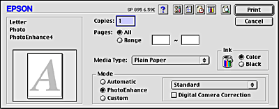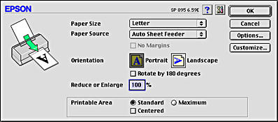 After the roll paper is loaded in the printer, make sure that the Stylus Photo 895 is selected in the Chooser before proceeding. Follow the steps below to configure your printer software for printing.