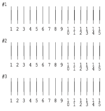 The following are examples of the alignment sheet for black printing that are printed by the printer first.