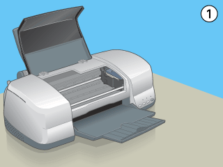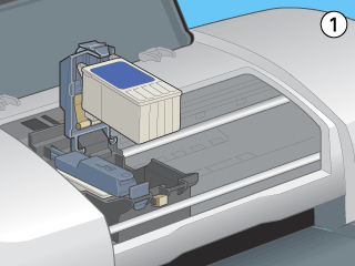 Press the ink button. The print head moves to the ink cartridge replacement position, the power light begins to flash. To find out which cartridge requires replacing, see Using the printer's control panel buttons, or check EPSON Status Monitor 3 (for Windows) or EPSON StatusMonitor (for Macintosh).