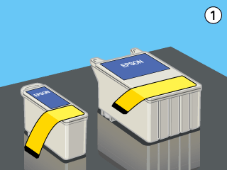If you have installed an ink cartridge without removing the yellow tape seal, you must remove the cartridge and install a new one. Prepare the new cartridge by removing the yellow tape seal, then install it in the printer.