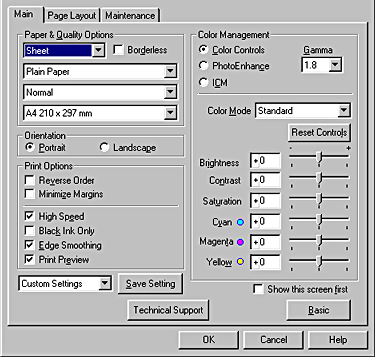 For use with the color matching and image enhancement methods provided by the printer driver. When you select Color Controls, additional settings appear under Color Management, allowing you to select a Color Mode setting and to adjust the Color Enhancement sliders.