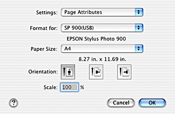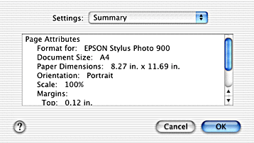 Select Page Attributes or Summary. When Page Attributes is selected, the page setting items will be displayed. When Summary is selected, a list of the current settings will be displayed. For more information on Summary, see Showing the current settings in the Page Setup dialog box. |