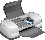 | Open the printer cover and make sure that the print head is in the home (far right) position. If not, turn on the printer and wait until the print head returns to the home position. Close the printer cover, and then turn off and unplug the printer. |