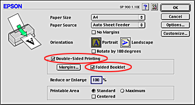 Select the Double-Sided Printing check box on the Page Layout menu (Windows) or in the Page Setup dialog box (Macintosh). Then, select the Folded Booklet check box.