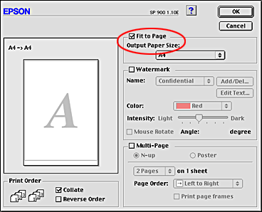 Select the Fit to Page check box in the Layout dialog box (Macintosh).